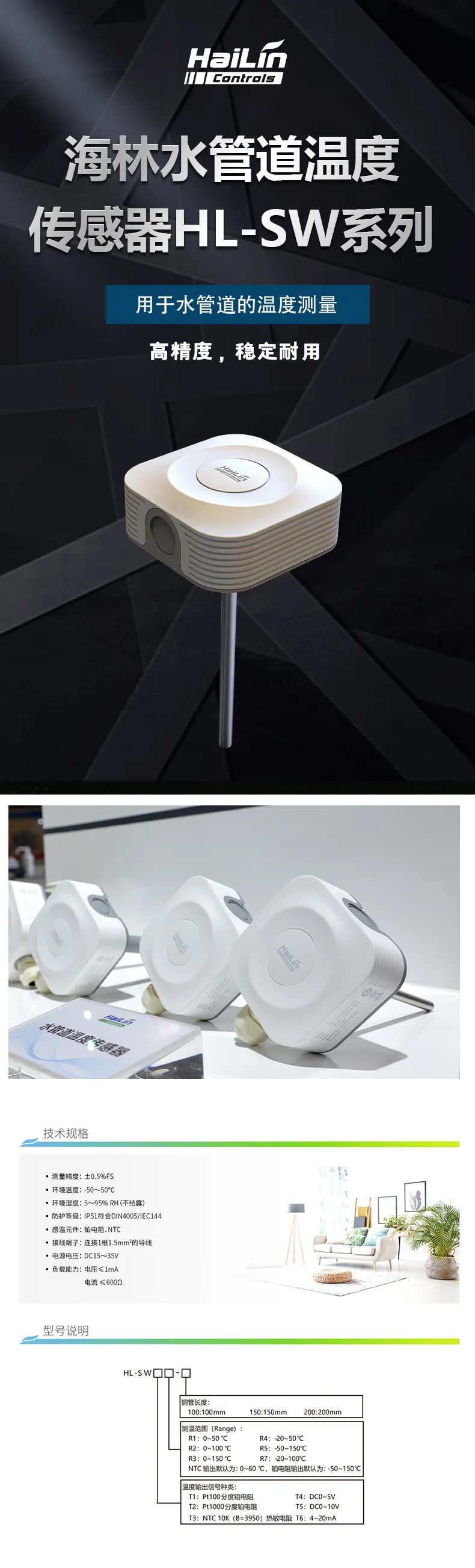 廣泛應(yīng)用于商業(yè)建筑、實(shí)驗(yàn)室、工廠以及國(guó)家體育館、國(guó)家速滑館、“三場(chǎng)一村”冬奧會(huì)項(xiàng)目等大型場(chǎng)館中,主要用于水管道的溫度測(cè)量,可提供多種溫度測(cè)量范圍,以適應(yīng)管道流體介質(zhì)的不同;可提供NTC、鉑電阻、電壓、電流信號(hào)輸出,適應(yīng)各種控制系統(tǒng)的不同要求。當(dāng)用于水管道測(cè)量時(shí),應(yīng)配套水溫套管使用。