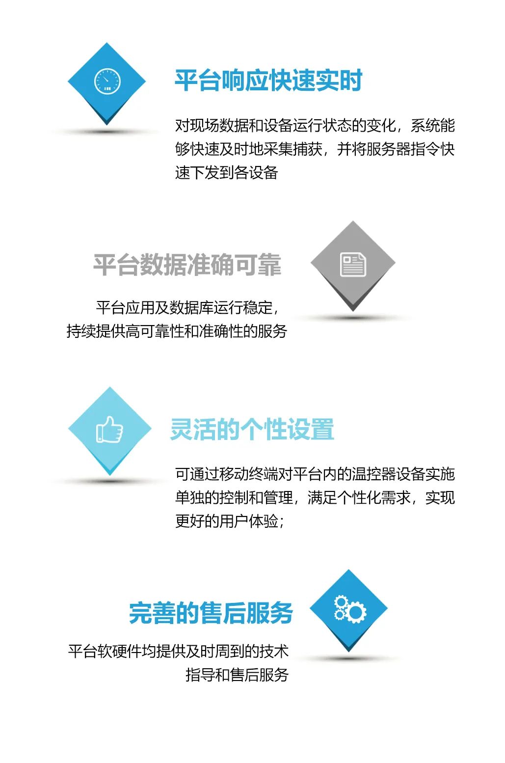 海林HNTS · 聯網溫控器監控平臺可以實時監控設備的運行狀態和各項參數;實現遠程自動化的設備管理;可配置預設時間表,遠程設備可根據預設內容進行準時、準確的啟停操作和溫度控制;平臺根據用戶需要可設置監控點區域,以實現分區管理,提高系統和用戶的操作效率;監控點設備出現異常或故障時,實現報警管理;實現歷史數據存儲,以供后期統 計、查詢、分析。