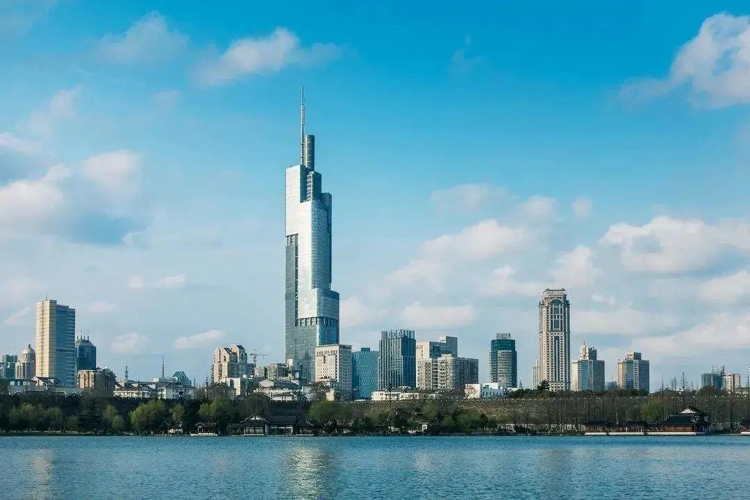 南京紫峰大廈,南京最高峰、江蘇第一高樓、世界第七高樓。占地面積18721平方米,總建筑面積261075平方米,其中主樓地下4層,地上89層,高度450米。辦公副樓24層,裙房7層。是世界第一座完全中國投資、中國建設的超級摩天大樓。